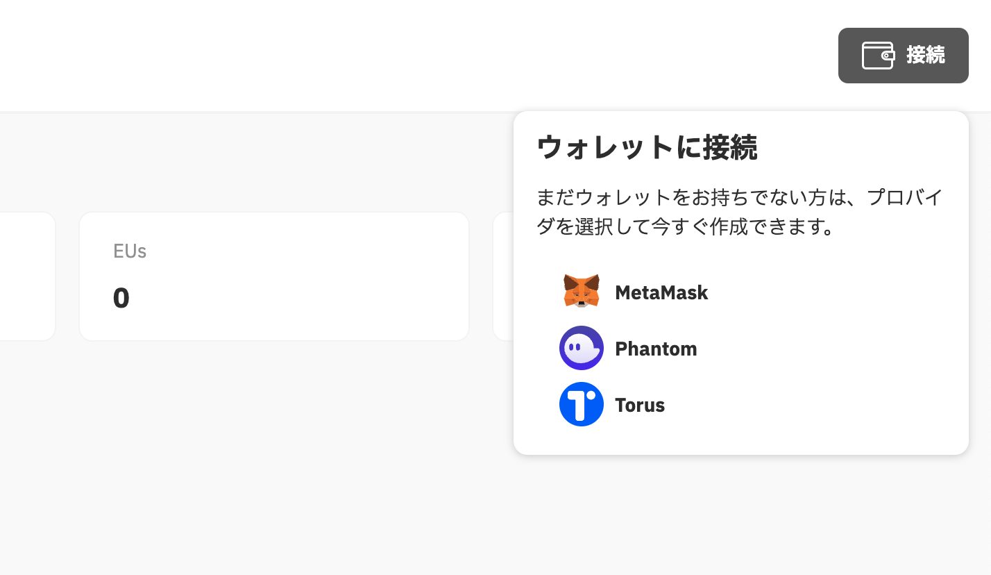 ## 2. ウォレット接続 <a href="#connect-wallet" id="connect-wallet"></a>