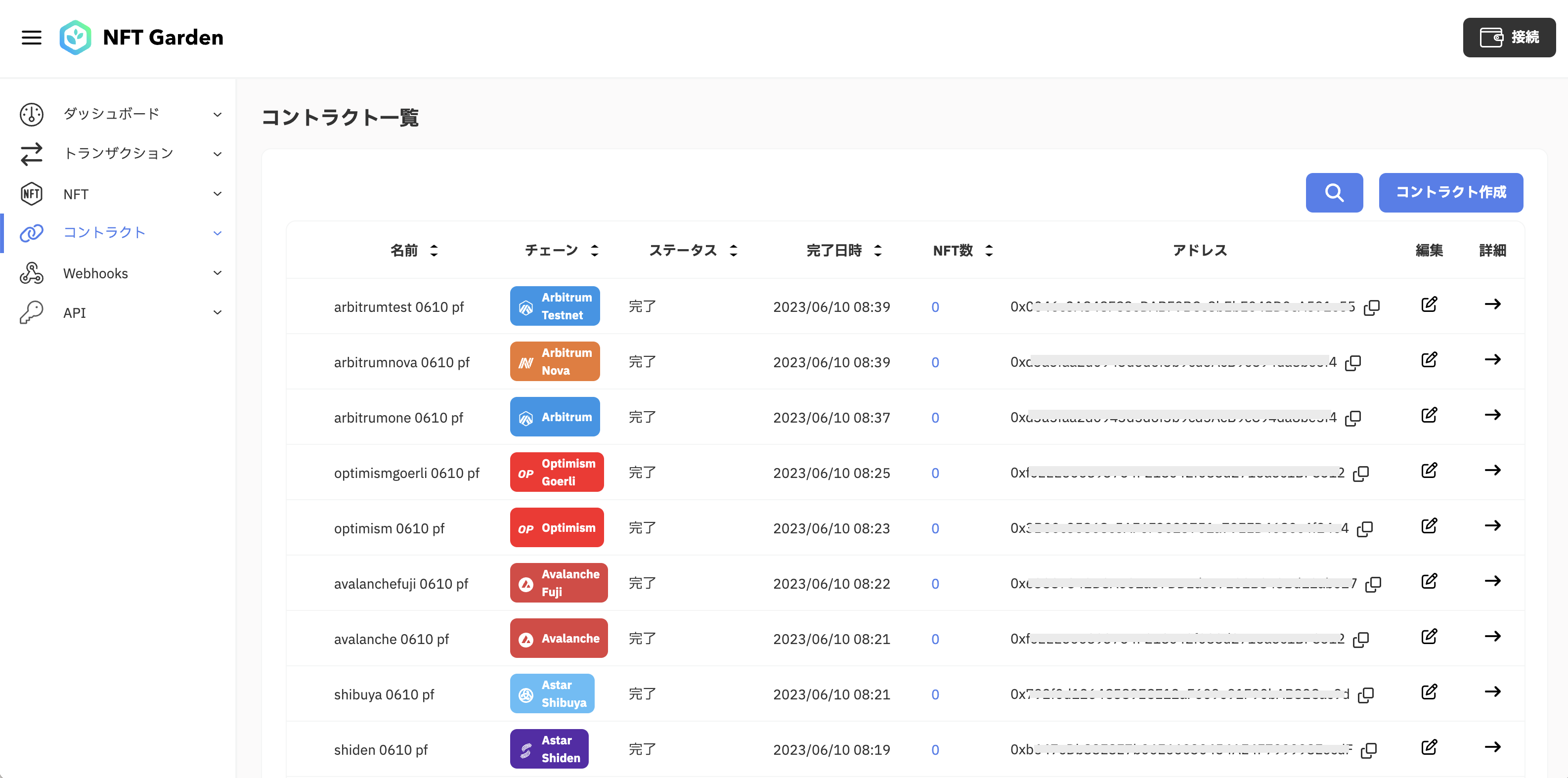 作成したコントラクトの削除、設定変更には対応しておりません。